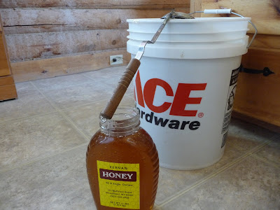 I used the last of my jarred honey. Time to get out the five gallon bucket (about 80 lbs) I bought this summer. What can I say, I saved some money.